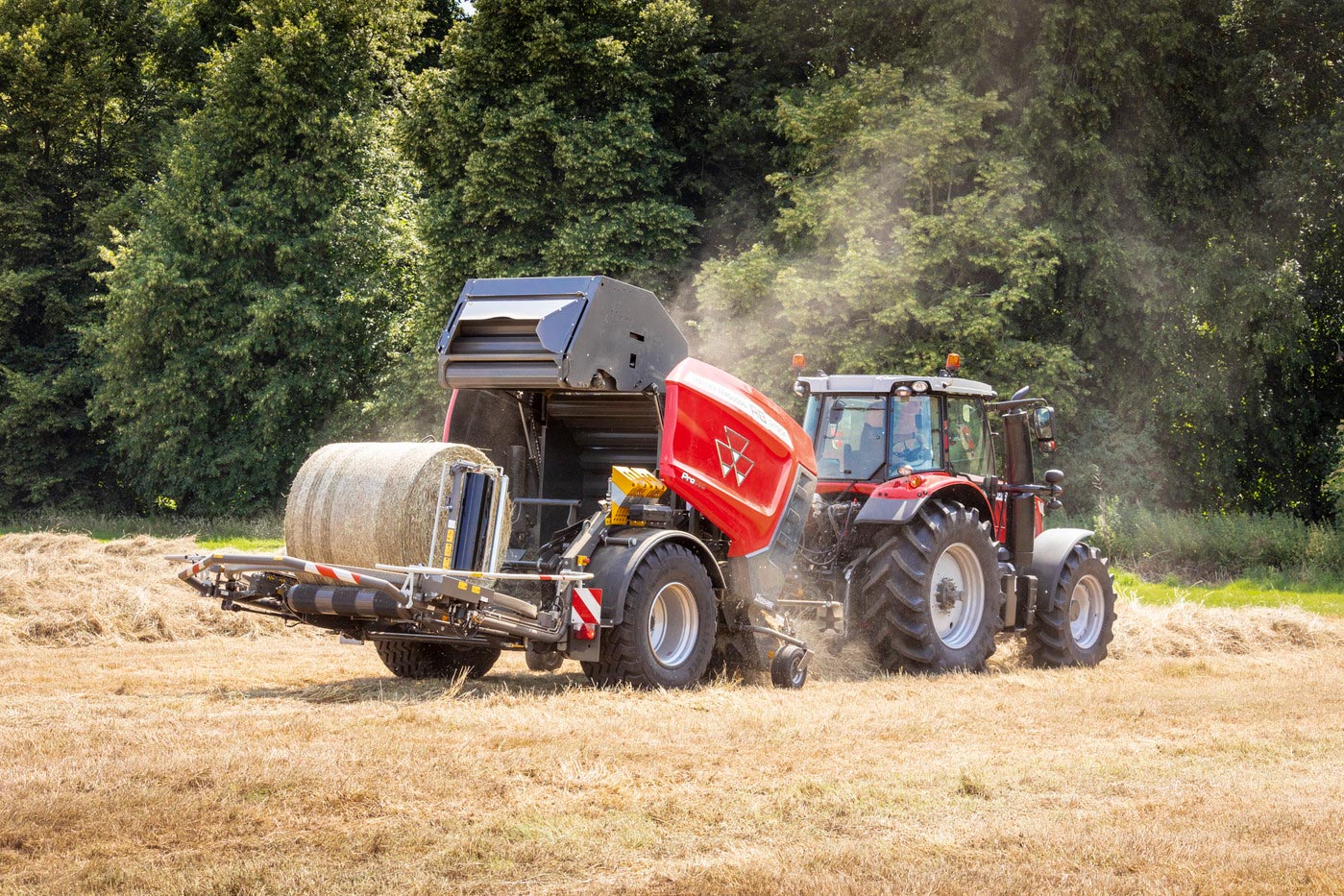 La serie MF RB ProTec redefine la roto-empacadora con su avanzado modelo RB 3130F ProTec, que combina las funcionalidades de una empacadora de cámara fija con una encintadora integrada. Esta innovación permite empacar y encintar simultáneamente, asegurando protección instantánea de las pacas contra el clima y manteniendo la calidad del forraje.